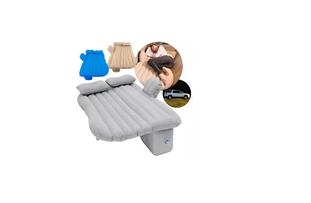 Colchón Inflable Para Autos Con Almohadas E Inflador Este colchón inflable para vehículo es la opción ideal para un descanso repentino o un viaje al aire libre. Se puede colocar en los asientos de pasajeros y convertir el espacio en una cama cómoda con almohadas para una o dos personas. Las boquillas de aire con doble sellado ayudan a que el aire no se escape fácilmente y dure por mucho tiempo. El material flocado es suave y agradable al tacto. Incluye un soporte que se rellena y luego se posiciona en el espacio inferior entre asientos para servir de apoyo al colchón y darle mayor estabilidad. Puedes inflar o desinflar rápidamente en unos minutos, y puedes ajustar la cantidad de aire. Para inflar el colchón, debes poner la boquilla en el colchón y luego conectar el cable del inflador al enchufe del vehículo para que empiece a bombear.