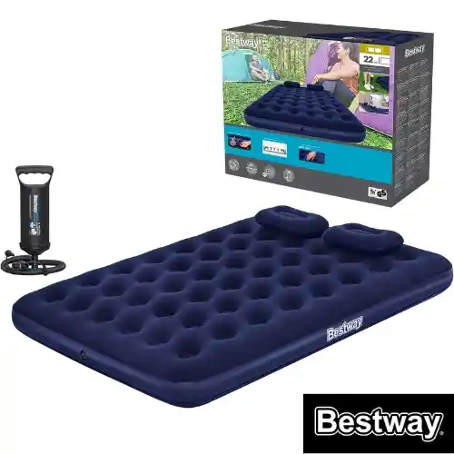 🛏️ Colchón Inflable Queen Bestway Pavillo – Con Inflador Incorporado + 2 Almohadas Duerme con comodidad donde vayas. El colchón inflable Queen Bestway Pavillo es perfecto para camping, visitas en casa o viajes, gracias a su tamaño amplio, superficie cómoda y diseño práctico con inflador incorporado. ✔ Tamaño Queen: ideal para 2 personas con amplio espacio. ✔ Incluye 2 almohadas inflables: descanso completo y mayor comodidad. ✔ Inflador incorporado: infla y desinfla fácil y rápidamente, sin accesorios extra. ✔ Superficie flocada suave: más confort al dormir. ✔ Material resistente y duradero: apto para interior y exterior. ✔ Portátil y práctico: perfecto para camping, vacaciones o visitas.