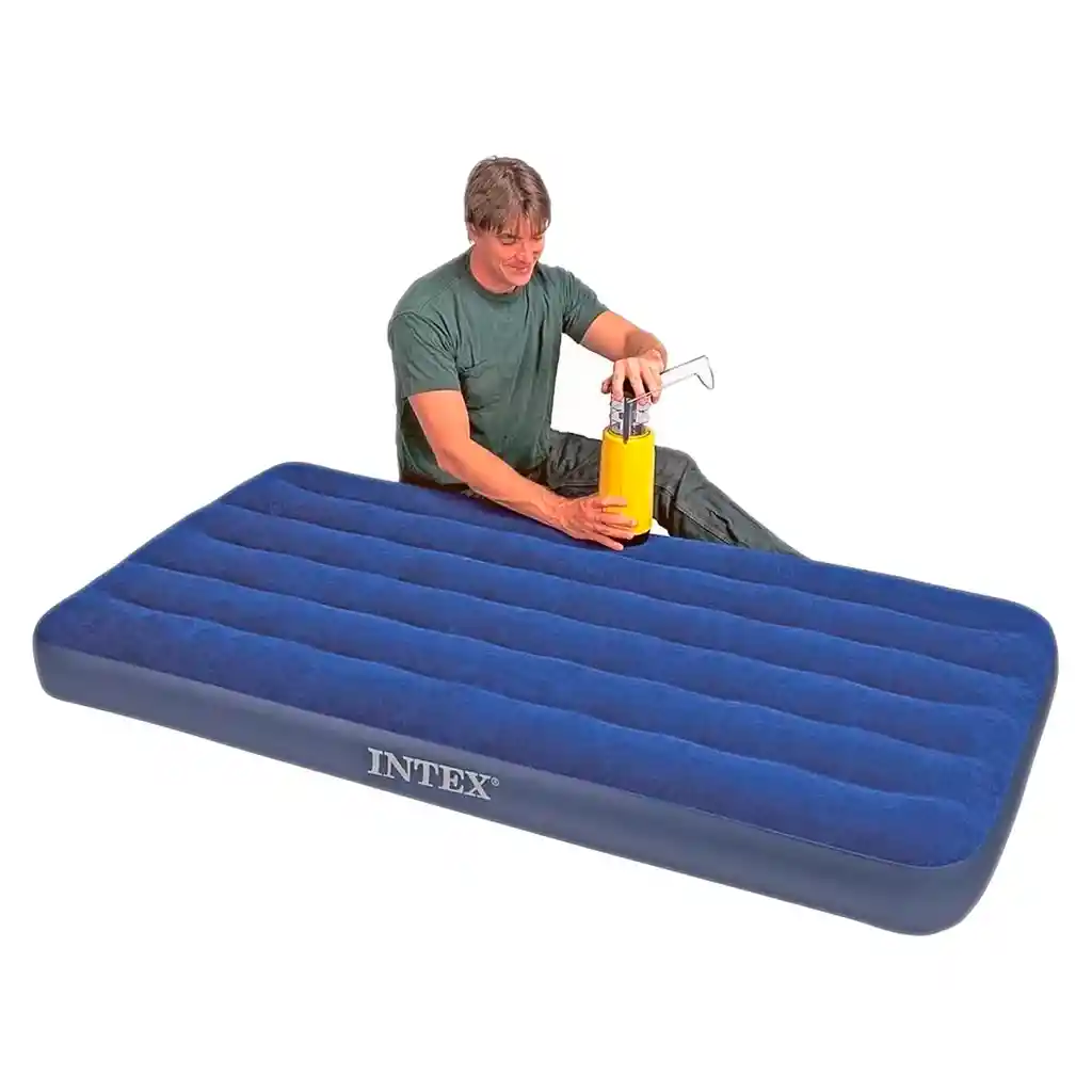 Detalles Colchón Inflable Sencillo Intex Azul Ref. 68757 -Medida: 191 x 99 x 22 cm. -Pliegues compactos para facilitar el almacenamiento. -Parte superior en gamuza para mayor confort. -Resistente. -Color: Azul.