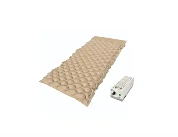 Esta superficie disminuye el riesgo de úlceras por presión al estar fabricada enPVC de grado médico. que evita la compresión vascular prolongada. El colchón es anti-decúbito con bomba regulable y tiene manguera flexible.