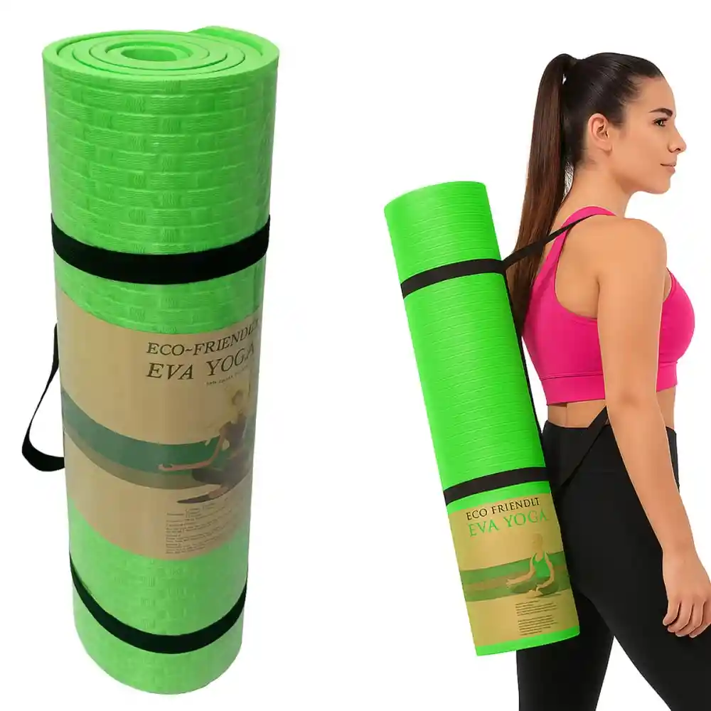 Colchoneta De Yoga 10mm de espesor Diferentes colores Incluye cuerda para transportar con facilidad Medidas: 1.8 m x 62 cm (largo x ancho) Es antideslizante Práctica para realizar ejercicios de Pilates, Yoga, Aerobicos, Estiramiento, etc. Proporciona comodidad y mantiene la alineación correcta del cuerpo y mantiene la postura realizada. Ideal para todo tipo de practica desde principiantes hasta profesionales. Esta esterilla además es ideal para la playa o picnic, con Kambrel en los bordes y agarradera para guardar y llevar fácilmente. (OJO): Se enviarán los colores de manera al azar.