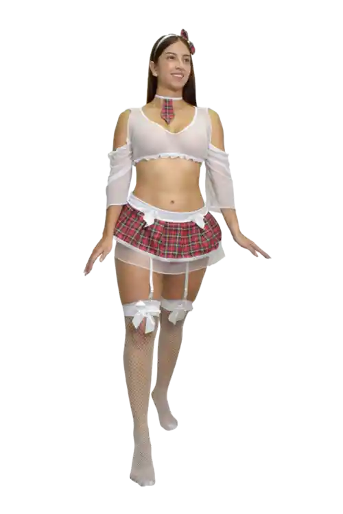DESCRIPCION. SET: 7 piezas ( 1 CINTA MOÑO, 1 CORBATA, 1 BLUSA, 1 FALDA, 1 PANTY LIGUERO, 2 LIGAS NO INCLUYE MEDIAS) TALLA: Talla unica graduable COLOR: ela de rayas y blusa blanca COMPOSICION DE TELAS: ELASTICO (100% POLIESTER),HERRAJES METALICOS, ENCAJE ( NYLON 91%, ESPANDEX 9%), Mallatex (Poliester 94%, Spandex 6%)Lino Poliester ( 100% poliester )