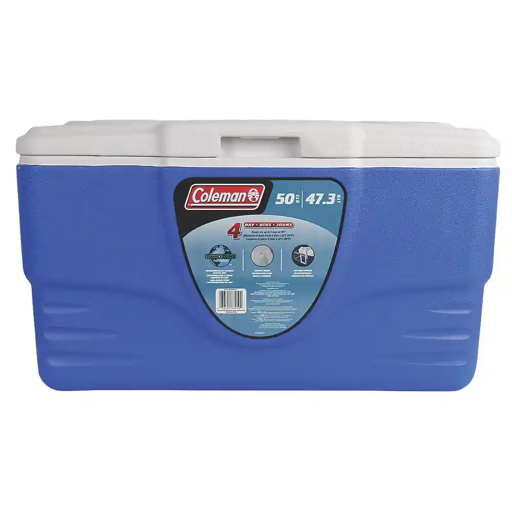 Modelo: 50 QT Azul Tamaño ideal: posee un espacio suficiente para contener hasta 46 latas en su interior más el hielo, tendrá mucho espacio para preparar una comida completa para usted y sus familiares y amigos. Además tiene la altura exacta para colocar botellas de dos litros de forma vertical y evitar derrames. Versátil: puede ser usada para refrigerar bebidas o cuando se dirija a un picnic por la tarde o a la playa. Además puede conservar el hielo hasta por 2 días sin problema. Elementos de primera: posee doble asa de gran agarre, lo que va a permitir llegar a su destino sin mayor dificultad, además posee tapa de una sola pieza con bisagras y una base amplia para una mayor estabilidad. Su interior es a prueba de moho y super resistente. Características: Capacidad: 47,3 Lt.