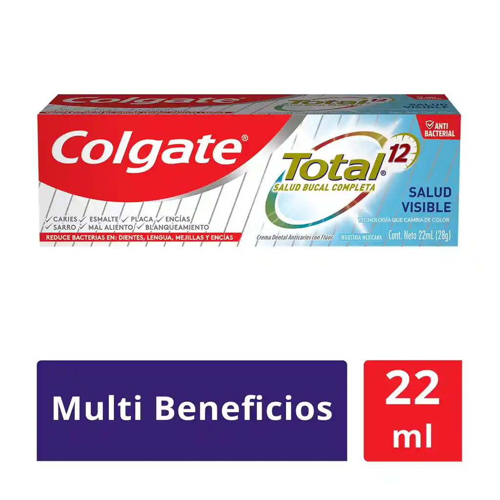 se puede ver cómo actúa su protección en tu boca y es el primer paso para una rutina más saludable. Beneficios: Salud bucal: durante el cepillado, la espuma cambia de color indicando cuando se logra una buena salud bucal. Avanzada fórmula con sistema Antibacterial.