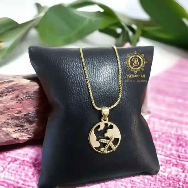"El "Collar Alas de Fe" es una joya dorada de diseño refinado que presenta un dije del mundo con un avión volando sobre él, simbolizando la fe que impulsa a alcanzar grandes destinos. Esta pieza no es solo un accesorio, es una declaración de confianza en los sueños y en la guía divina que acompaña cada paso del camino. "Y todo lo que pidiereis en oración, creyendo, lo recibiréis." – Mateo 21:22 Este collar representa la convicción de que, con fe y oración, los horizontes se expanden y los imposibles se vuelven alcanzables. Ideal para quienes están por emprender un nuevo viaje, tomar una decisión importante o simplemente desean llevar consigo un recordatorio de que el cielo no es el límite cuando se cree con el corazón." Recibirás tu accesorio en una bolsa premium, perfecta para la entrega inmediata de tu regalo.