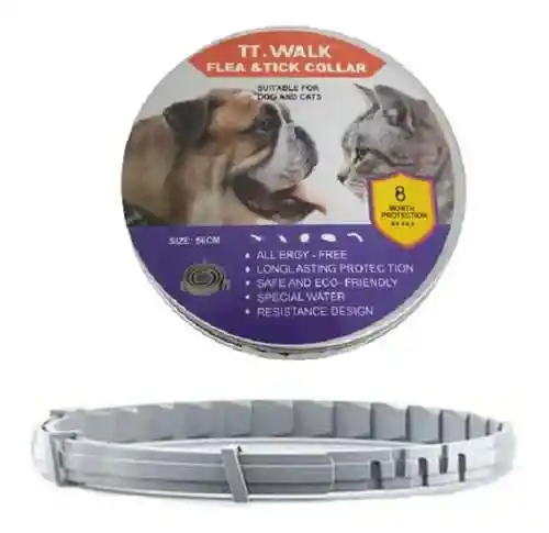 collar antipulgas y garrapatas Protección: Ofrece 3 meses de protección contra pulgas y garrapatas. Tamaño: La talla del collar es de 36 cm. Características: Es hipoalergénico (All Ergy-Free), de protección duradera, seguro y ecológico, y cuenta con un diseño especial resistente al agua. Beneficios: Es lavable sin afectar su eficacia, lo que prolonga su vida útil. Uso: Se ajusta al cuello de la mascota, liberando principios activos que cubren todo el cuerpo para eliminar parásitos.