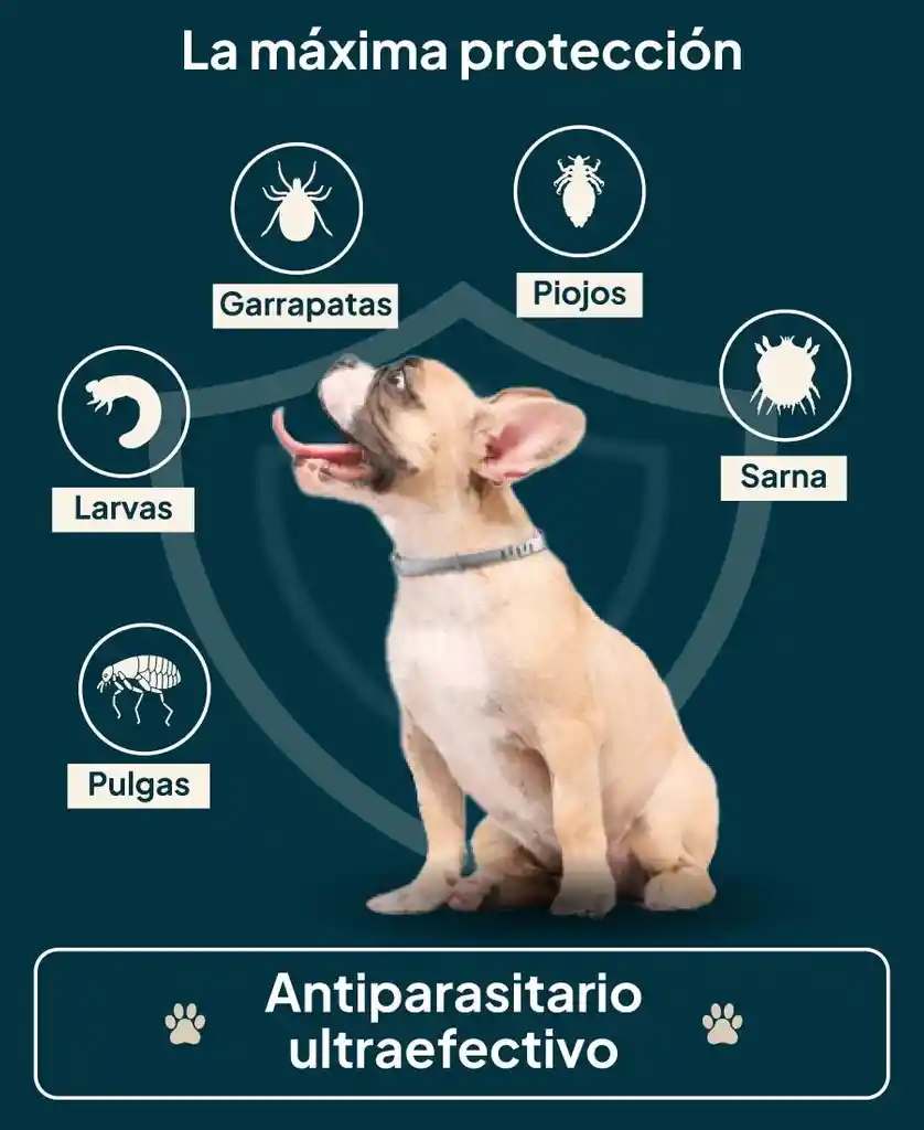 ¡Mantén a tu mascota libre de pulgas y garrapatas durante 8 meses con nuestro collar antipulgas de alta calidad! Ideal para perros, gatos y otras mascotas, este collar ofrece una protección completa, segura y de larga duración para tus compañeros de cuatro patas. Características Principales: Protección de 8 Meses: Disfruta de una protección continua y eficaz contra pulgas, garrapatas y otros parásitos durante 8 meses completos. Apto para Perros, Gatos y Otras Mascotas: Este collar es adecuado para todo tipo de mascotas, garantizando comodidad y seguridad para todas las edades y tamaños. Sin Residuos Grasos: A diferencia de otros productos, este collar es completamente no graso, asegurando que tu mascota no se sienta incómoda ni ensucie su pelaje. Material Seguro y Duradero: Fabricado con materiales resistentes y ecológicos, el collar está diseñado para soportar las actividades diarias de tu mascota sin perder eficacia. Fácil de Usar: Coloca el collar fácilmente alrededor del cuello de tu mascota y ajusta según el tamaño para obtener la protección deseada. Beneficios: Protección a Largo Plazo: Con 8 meses de protección continua, tu mascota estará libre de parásitos sin necesidad de aplicar productos adicionales constantemente. Comodidad y Seguridad: Su diseño ergonómico y su fórmula segura garantizan que tu mascota esté protegida sin sufrir efectos secundarios. Ideal para el Hogar y al Aire Libre: Ya sea que tu mascota esté dentro de casa o explore al aire libre, el collar ofrece protección contra pulgas y garrapatas durante todo el día. Apto para Todas las Razas: No importa el tamaño ni la raza de tu perro o gato, este collar se adapta cómodamente y brinda protección total. ¿Por qué elegir este collar antipulgas? Este collar antipulgas es la solución perfecta para mantener a tu mascota segura, saludable y libre de parásitos. Su fórmula innovadora y su diseño práctico lo convierten en el producto ideal para cualquier dueño de mascotas que busque comodidad y eficacia. Protege a tu mejor amigo de manera segura y sin complicaciones. Instrucciones de Uso: Coloca el collar alrededor del cuello de tu mascota y ajusta para que quede cómodo, pero no demasiado apretado. Asegúrate de que el collar no esté demasiado holgado, para evitar que se deslice. Duración de protección: El collar proporciona protección contra pulgas y garrapatas durante 8 meses.