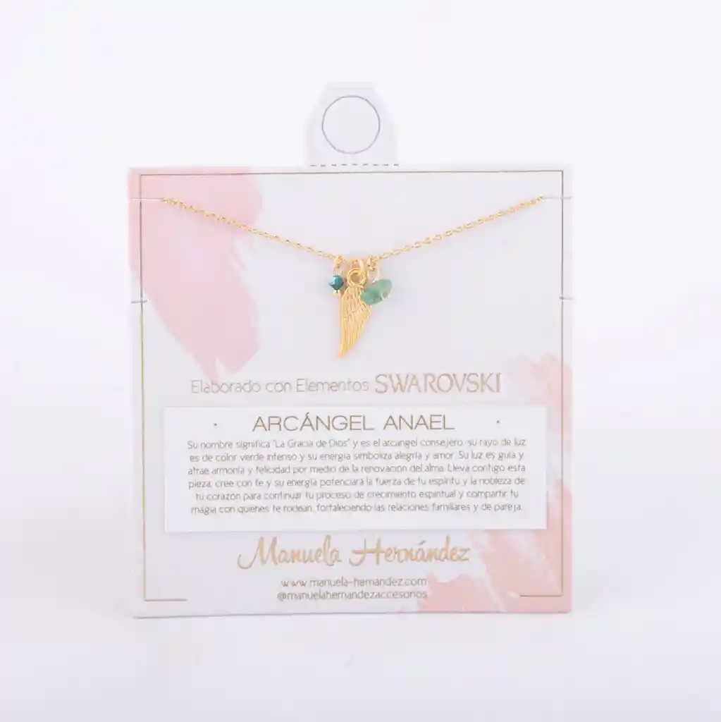 Este collar de la Colección Arcángeles es un amuleto para volver a sonreír desde adentro. ✨ Su ala dorada y los cristales en tonos verdes/azules tipo Swarovski evocan una energía de gracia, alegría y armonía que te acompaña en lo cotidiano. Llévalo cuando quieras sentirte más liviana, abrir espacio para lo bonito y recordar que tu corazón merece calma, amor y momentos de felicidad verdadera. Características de tu Producto Tipo: Collar delicado de cadena fina Colección: Arcángeles Diseño: Dije central de ala en acabado dorado + dijes con cristales en tonos verdes Estilo: Minimalista, elegante y espiritual (gracia, alegría, armonía, amor) Ideal para: Uso diario, layering, regalo con intención (para elevar el ánimo y atraer bienestar) Cuidado recomendado: Evitar agua, perfumes y cremas guardar por separado para proteger el acabado y los cristales La cadena y los apliques dorados cuentan con Baño de Oro 18k. Elaborado con Cristales Swarovski. Elaborado con Cuarzos 100% Naturales. Longitud de la cadena: 45 cm.