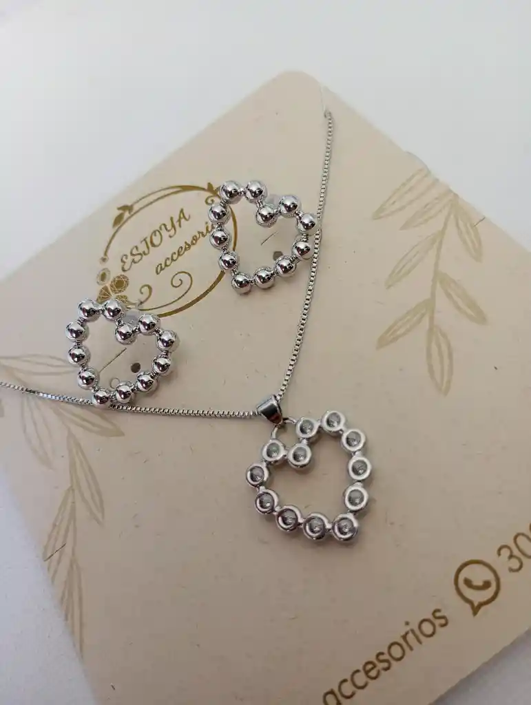 HERMOSO Y ELEGANTE COLLAR + ARETES PLATEADOS CORAZON PARA DAMA B14 ULTIMA COLECCION