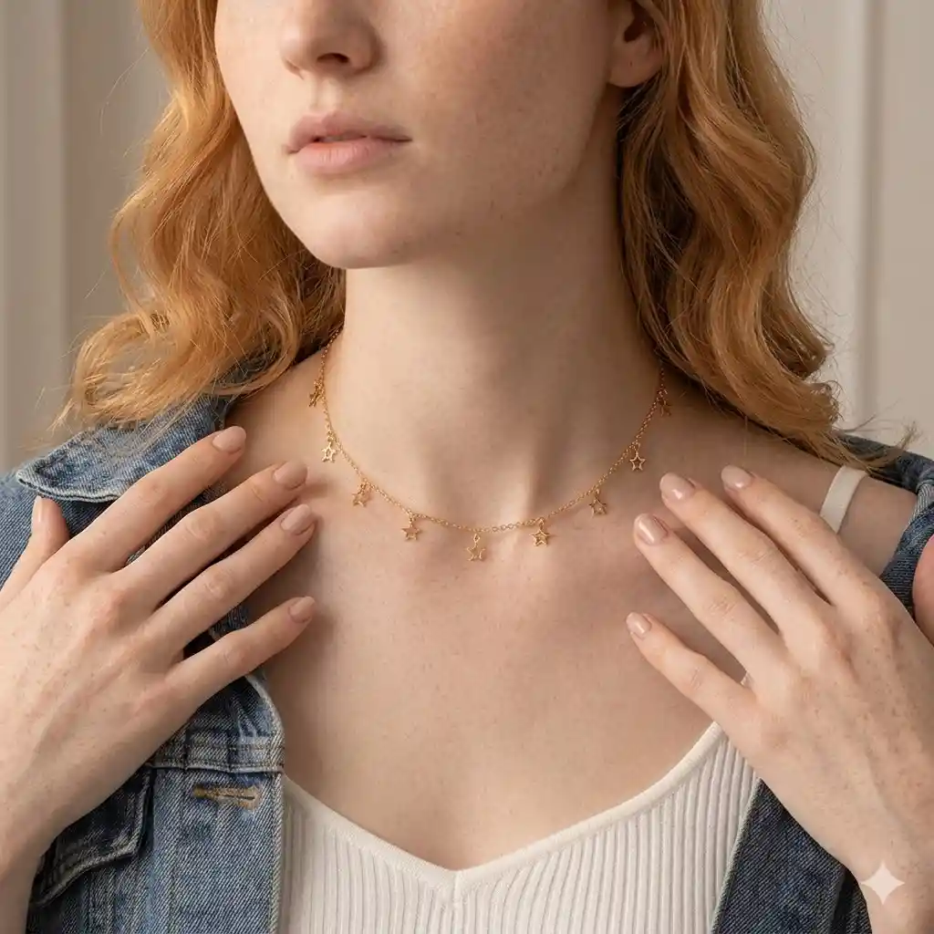 Collar Bohemio para Mujer con Flecos Cortos, Dijes de Estrella y Colgante de Flecos - Cadena para Clavícula en acero inoxidable
