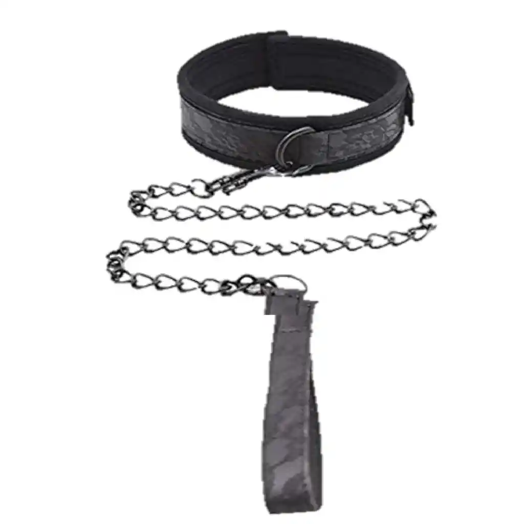 Collar de bondage S/M con ajuste seguro para el cuello, equipado con una robusta cadena de metal y un mango de sujeción (tipo correa de control). Ideal para la dominación, el juego de rol y el control total de la pareja sumisa.