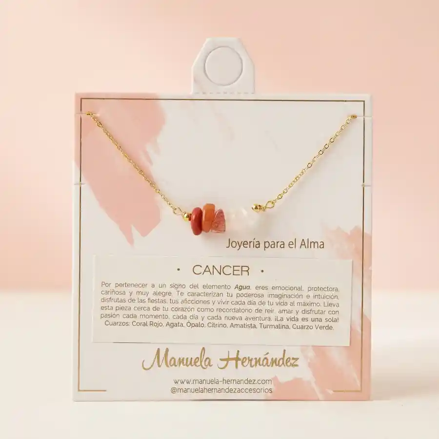 La cadena y los apliques dorados cuentan con Baño de Oro 18k. Elaborado con Cuarzos Naturales. Longitud: 40 cm. Cuenta con una extensión de 3.5cm para que puedas ajustar la longitud de tu collar.