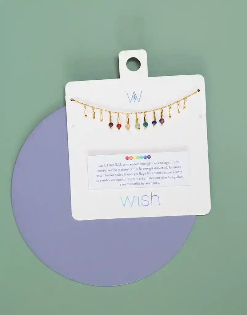 Los chakras son centros energéticos encargados de emitir, recibir y transformar la energía universal. Cuando están balanceados la energía fluye libremente entre ellos y te sientes en equilibrio y armonía. Estos cristales te ayudan a mantenerlos balanceados. Materiales: Cadena de latón con baño de oro de 40cm + 3cm de extensión