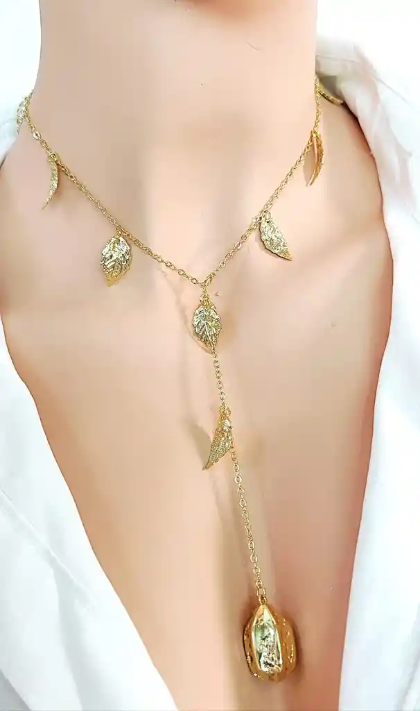 Collar colgante con detalles en forma de hoja Material : rodio Antialérgicas