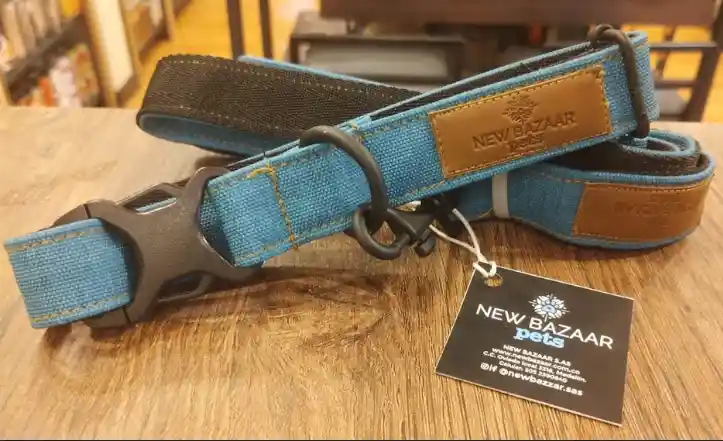COLLAR AZUL PARA PERROS PEQUEÑOS Y MEDIANOS. INCLUYE CORREA Y HERRAJES COMO SE MUESTRAN EN LA FOTO