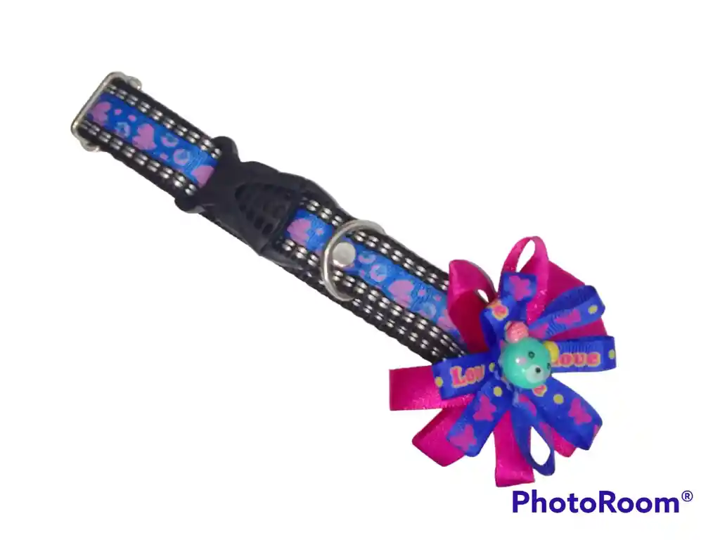 el accesorio ideal para los paseos para que tu mascota camine junto a ti, hecho reata con diseño precioso y hebilla metálica ajustable. Medidas máxima 27 x 2 cms