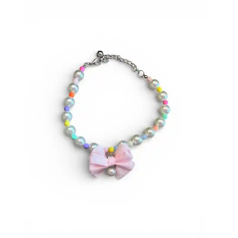Elegante y encantador collar con perlas de colores y accesorio tipo moño, ideal para gatos y perros pequeños que lucen accesorios delicados y llamativos. Su diseño combina perlas multicolor con un moño decorativo, creando un estilo tierno y sofisticado, perfecto para paseos, celebraciones o sesiones de fotos. ✨ Características principales: Diseño con perlas de colores Incluye accesorio tipo moño Ligero y cómodo para la mascota Ideal para gatos y perros pequeños Fácil de colocar Un accesorio perfecto para darle a tu mascota un toque especial y lleno de estilo.