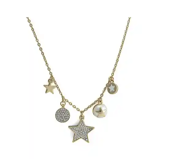 Collar elaborado en aleación de zinc con baño de oro amarillo y perla veneciana. Largo:20 cm
