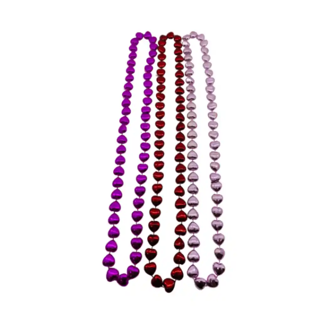 Collar de perlas de corazon en color violeta, rojo y lila por 3 unidades