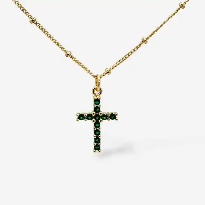 Añade un toque de elegancia y significado a tu estilo con el Collar Cruz Verde. Su diseño sofisticado con circonias verdes lo convierte en una pieza única, perfecta para llevar sola o combinar con otros accesorios. Fabricado en bronce con baño de rodio y oro de 18K, es resistente y hipoalergénico, ideal para uso diario. • Material: Bronce con baño de rodio y oro de 18K. • Hipoalergénico: Perfecto para pieles sensibles. • Cadena de 45 cm: Ajuste cómodo y versátil. • Dije con circonias verdes: Cruz de 1.9 cm de largo y 1.2 cm de ancho. • Resistente y duradero: No se pone negro con el tiempo. Un accesorio sofisticado para quienes buscan estilo y significado en una sola pieza.