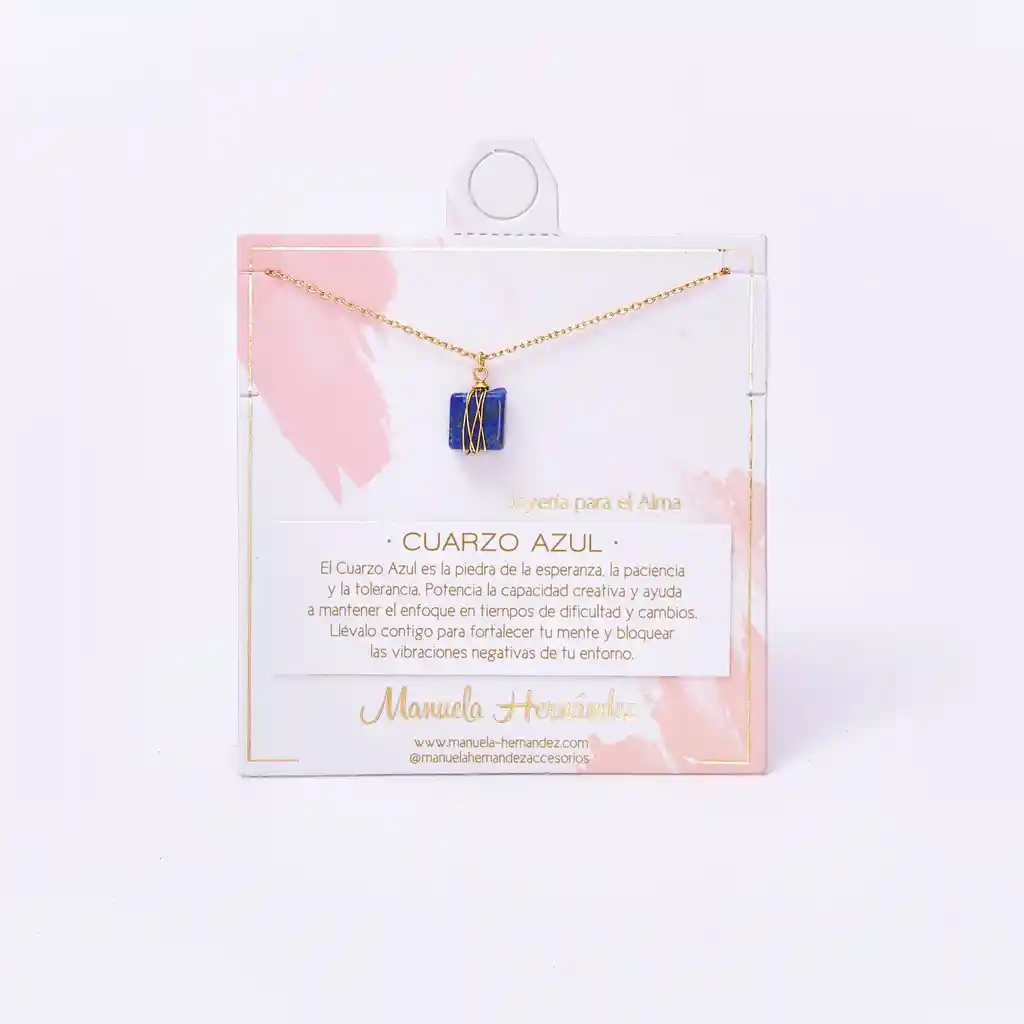 Cadena y apliques Dorados con Baño de Oro 18k. Elaborado con Cuarzo Azul Natural.