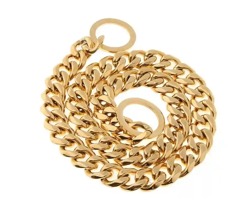 Collar de eslabones cubanos grandes de acero inoxidable. El metal sólido de acero inoxidable nunca manchará, oxidará ni irritará la piel de su perro Acabado pulido, los eslabones suaves y confortables no dañan y crean un collar de perro fresco Deje caer la cadena a través de uno de los extremos para hacerla como una letra P. y luego póngala en las mascotas.