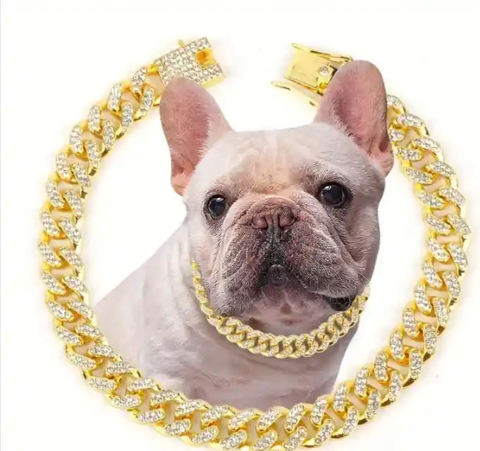 Collar individual brillante de cadena cubana para perros y gatos talla S, adornado con pedrería, lo que lo convierte en un accesorio llamativo para mascotas