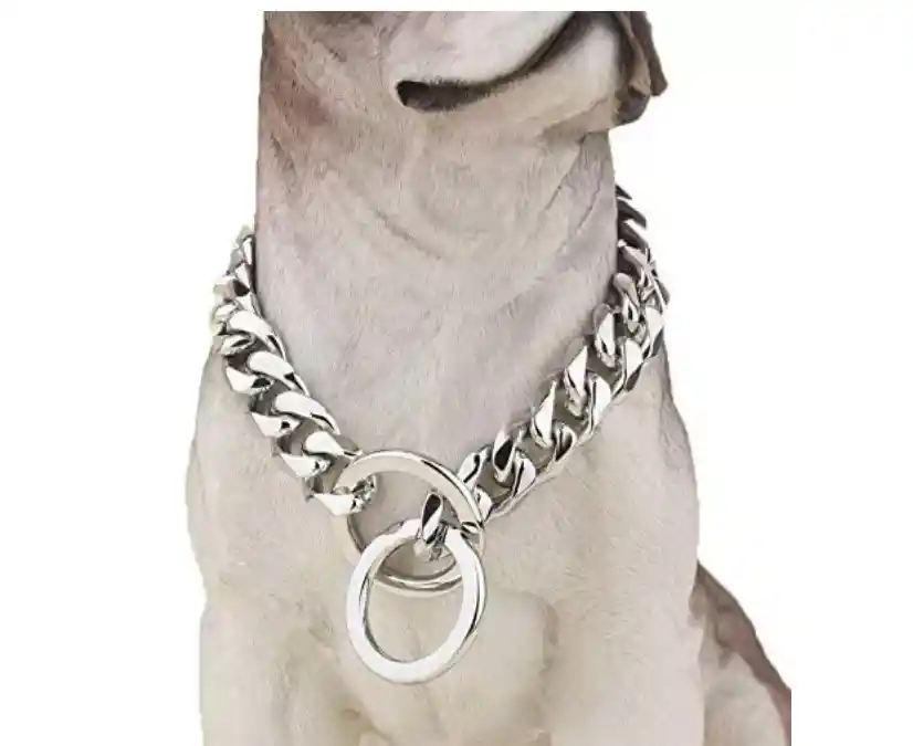 Collar de eslabones cubanos grandes de acero inoxidable. El metal sólido de acero inoxidable nunca manchará, oxidará ni irritará la piel de su perro Acabado pulido, los eslabones suaves y confortables no dañan y crean un collar de perro fresco Deje caer la cadena a través de uno de los extremos para hacerla como una letra P. y luego póngala en las mascotas.