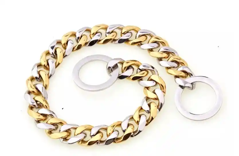 Collar de eslabones cubanos grandes de acero inoxidable. El metal sólido de acero inoxidable nunca manchará, oxidará ni irritará la piel de su perro Acabado pulido, los eslabones suaves y confortables no dañan y crean un collar de perro fresco Deje caer la cadena a través de uno de los extremos para hacerla como una letra P. y luego póngala en las mascotas.