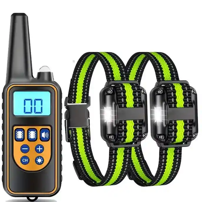 Entrena a tus perros de forma práctica, segura y sin complicaciones. Este sistema incluye dos collares y un control remoto, ideal para trabajar con ambos al mismo tiempo o de forma individual. ✔ Doble función de vibración Ajusta la intensidad según la sensibilidad y respuesta de cada perro. ✔ Modo sonido (beep) Perfecto para generar asociaciones sin contacto físico. Ideal para refuerzo y aviso. ✔ Control independiente Maneja cada collar por separado desde el mismo dispositivo. Precisión y rapidez en cada señal. ✔ Alcance a distancia Entrena en casa, parque o espacios abiertos sin perder control. ✔ Collares ajustables y resistentes Diseño cómodo, ligero y duradero. Se adapta a diferentes tamaños de perro. ✔ Pantalla digital fácil de usar Configuración rápida, botones intuitivos y respuesta inmediata. Ideal para: Mejorar obediencia básica Reducir conductas no deseadas Entrenamiento diario con mayor claridad en las señales