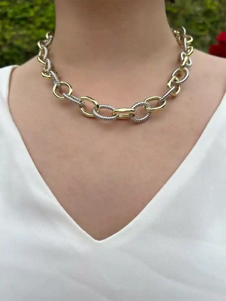 Collar de eslabón Color dorado y plateado en combinación Material en rodio Antialergicas