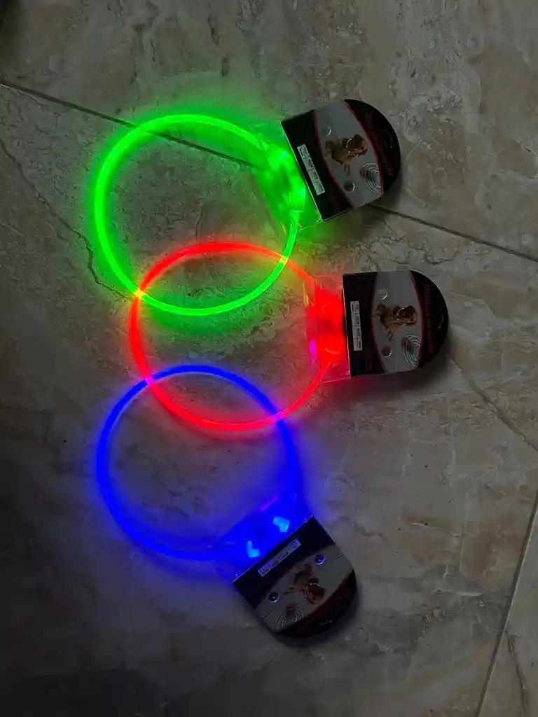 collar de luz en silicona, colores verde, azul, rojo, rosado, 3 tamaños, recargable, incluye cable cargador, ideal para pasear a las mascotas en la noche