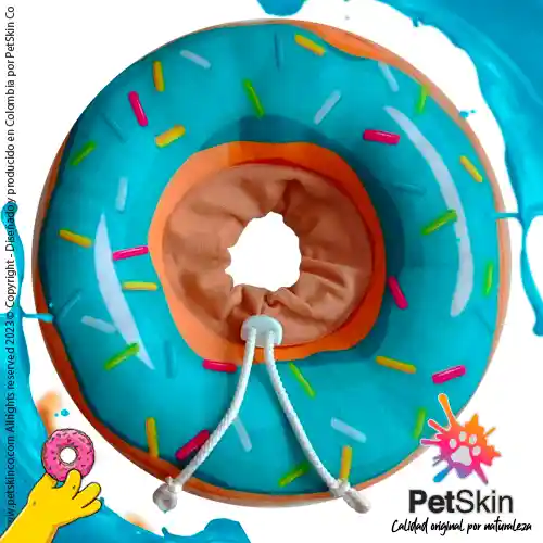 Collar Dona Isabelino Rosquilla para Gato Talla S Azul - Fabricado en Poliester Semiafelpado Ultraliviano Relleno de Algodón Sintético Siliconado. - Ideal para Cuidado post - quirúrgico Esterilización/Castración - Tratamientos Dérmicos ó aplicación de Medicamentos entre otros. - Permite que la mascota descance, come, y beba sin entrar en pánico, lastimarse o deprimirse con su uso. - Ajuste al cuello con cordón y tanca plástica. (Dejar un cm aprox entre el cuello y el collar para evitar ahogo) - Producto Premium de Diseño único y Original. PetSkin Co Calidad Original por Naturaleza!