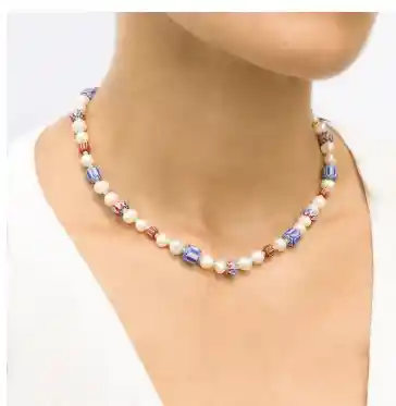 Collar de piedras de colores mixtos y perlas naturales Largo de la cadena: 40cm Peso: 21gr