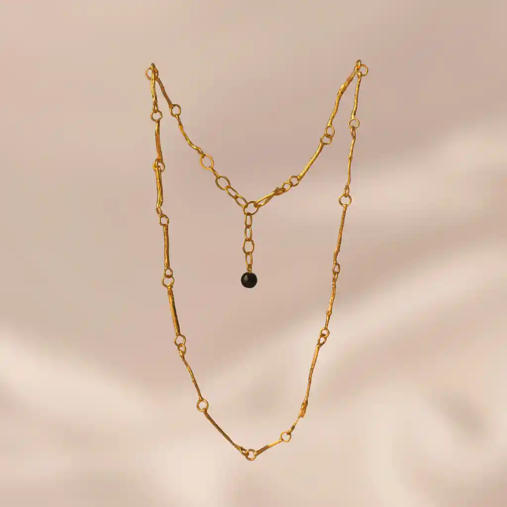 El Collar Entero Ramitas captura la esencia pura de la naturaleza en una joya atemporal. Recolectadas con cuidado durante nuestras caminatas por el bosque, las ramitas se transforman mediante la técnica de fundición orgánica en bronce, finalmente bañadas en oro de 24k. Este proceso no solo preserva la forma natural y única de cada ramita, sino que también las convierte en una pieza de joyería exclusiva y elegante, perfecta para aquellos que valoran la belleza en su estado más puro. Nota: Cada collar es una obra de arte única, que refleja la singularidad de las ramitas seleccionadas y nuestra pasión por la belleza natural. Material: Objeto natural inmortalizado en bronce con baño de oro de 24k