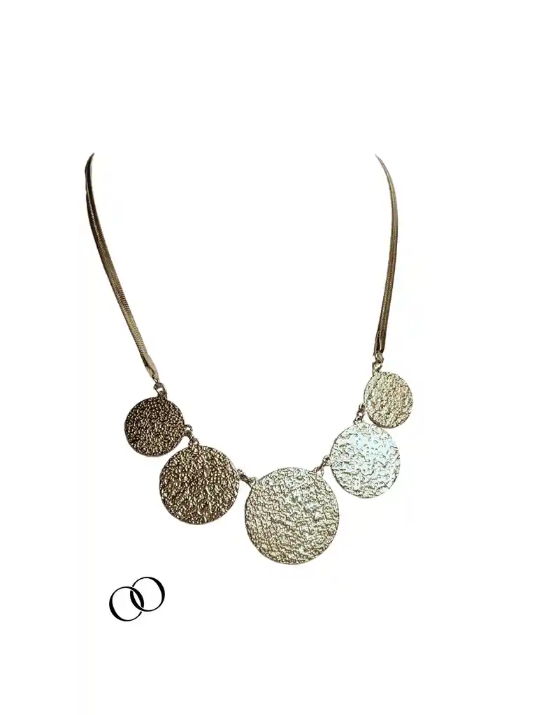 Delicado collar de acero, color dorado, tejido plano con circulos texturizados