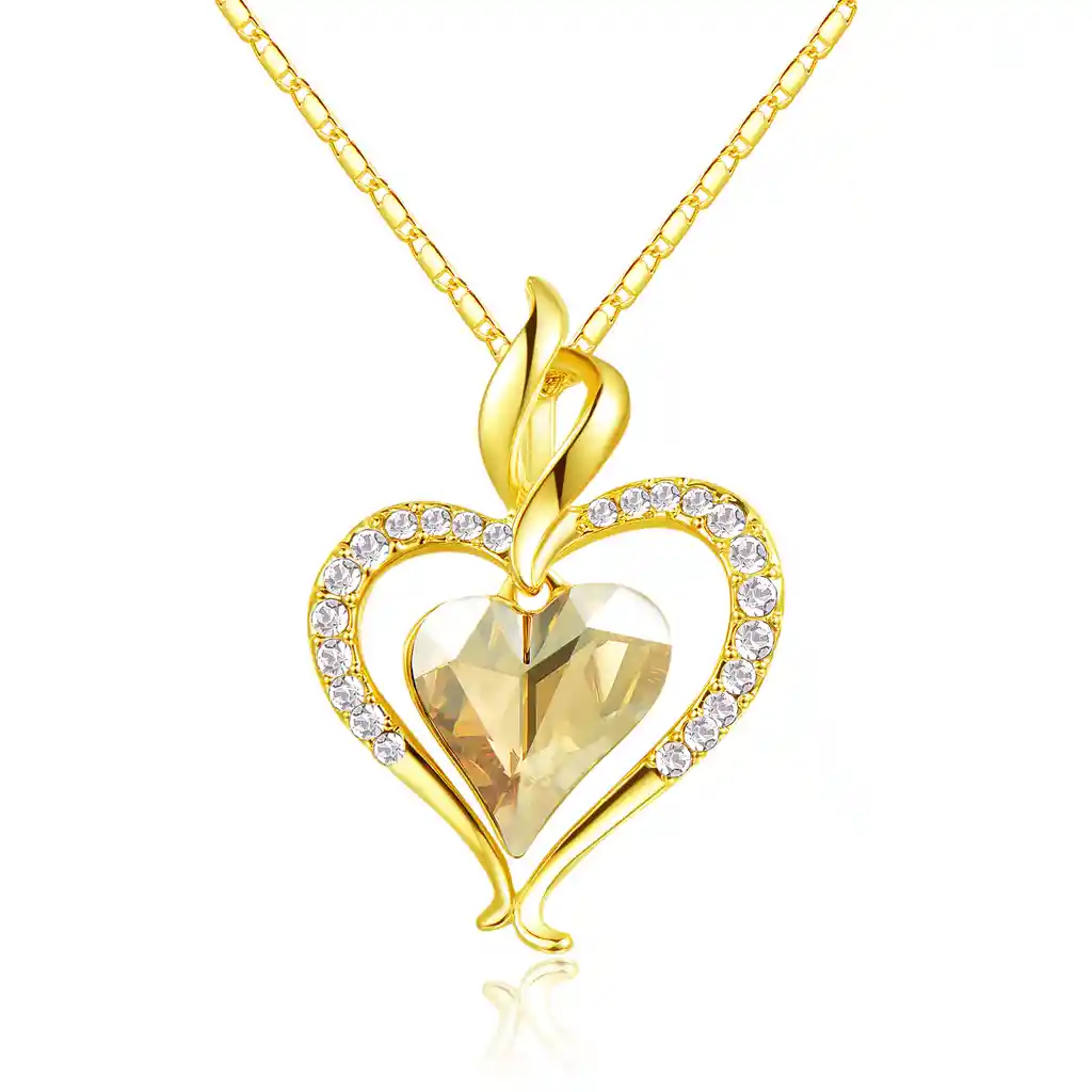 Collar Alhajas Corazón Para Mujer - Collar estilo romántico. - Fabricado en aleación de zinc. - Baño en oro de 18k. - Cristales austriacos con corte brillante. - Largo cadena: 40 cm. + 5 cm. (extensión de cadena). - Incluye GRATIS estuche. - Accesorio moderno y elegante para toda ocasión. - Perfecto para regalos especiales.