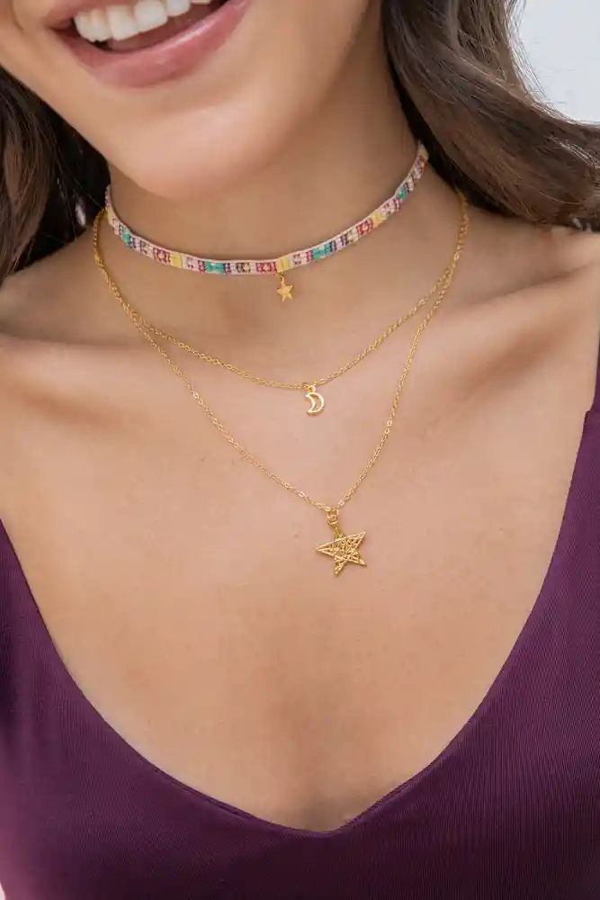 Set de cadenas en oro Goldfilled Brasilero con baño en oro de 24k,choker tejido en mostacilla checa. Incluye: 1 set de cadenas, se pueden usar juntas o por separado. Incluye aretes tipo topos (aretes pequeños), el diseño del arete te llegará según disponibilidad. Recibe con tu compra una FLORIBAG gratis, para que guardes por separado tus accesorios. Hecho a mano en Colombia. * Ten presente que algunas de las imágenes pueden estar ambientadas con otros productos que se venden por separado.
