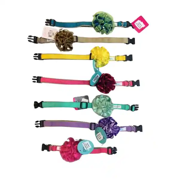 Collar con rosa para perritas gaticas medianas. !!!!Envíanos un mensaje confirmando el color deseado!!! Elaborado en reata suave de Nylon con rosa cosida, tensor plástico para ajustar el collar a la medida del cuello de tu perro y media argolla en hierro para sujetar la traílla. Mide a tu perro y añádele 2 cm más para la comodidad de tu mascota. Si estás entre 2 tallas te aconsejamos elegir la más grande. Talla L: desde 33 centímetros a 48 centímetros Cuidados Lavar a mano con agua y jabón. Secar al aire libre. Los herrajes no son inoxidables. Producto hecho en Colombia.