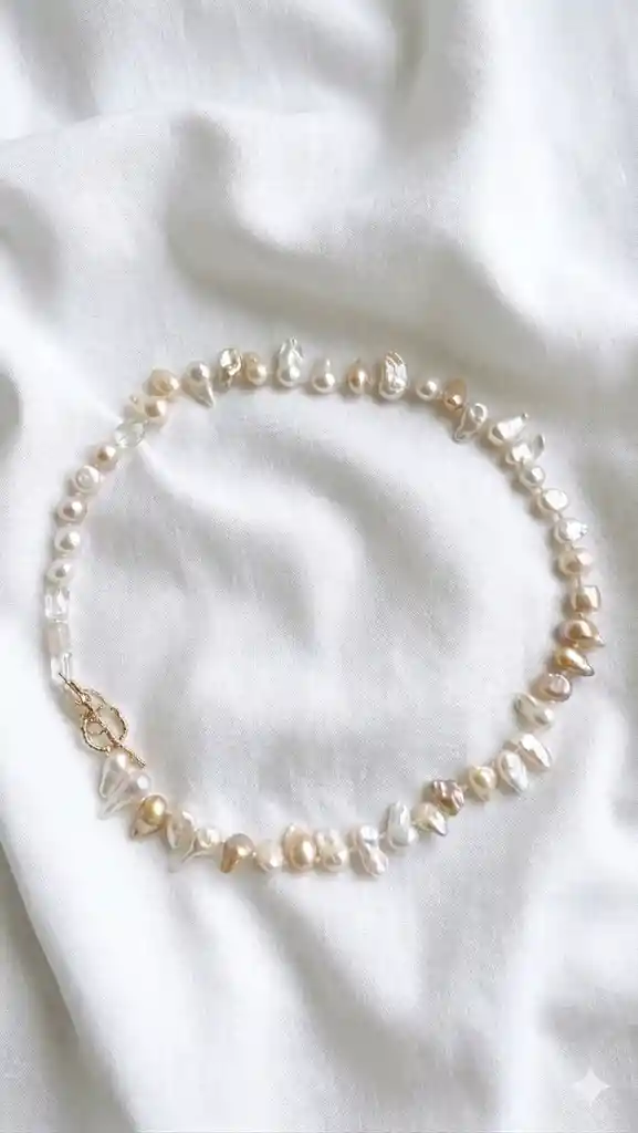 Un hilo de perlas naturales anudadas a mano, cerrado por una ramita real inmortalizada en bronce con baño de oro 24k. La delicadeza de la perla encuentra la textura orgánica del metal — dos materiales que vienen de la naturaleza y se reconocen entre sí. Se lleva pegado al cuello como gargantilla o con algo de caída según cómo se anude. Ideal para una novia, un cumpleaños importante, o para quien simplemente merece algo hecho con las manos y con tiempo. El cierre en ramita puede variar ligeramente — porque ninguna rama es igual a otra.