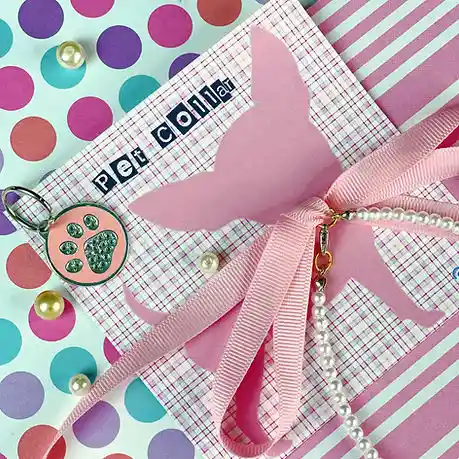 Collar GLAM para tú mascota hecho de perlas y acero inoxidable. Acommpañado de una delicada cinta rosa. (Para perritos pequeños y gatos) 🐱🐶 *Personalízalo con el nombre de tú mascota. Medida: 25 cm