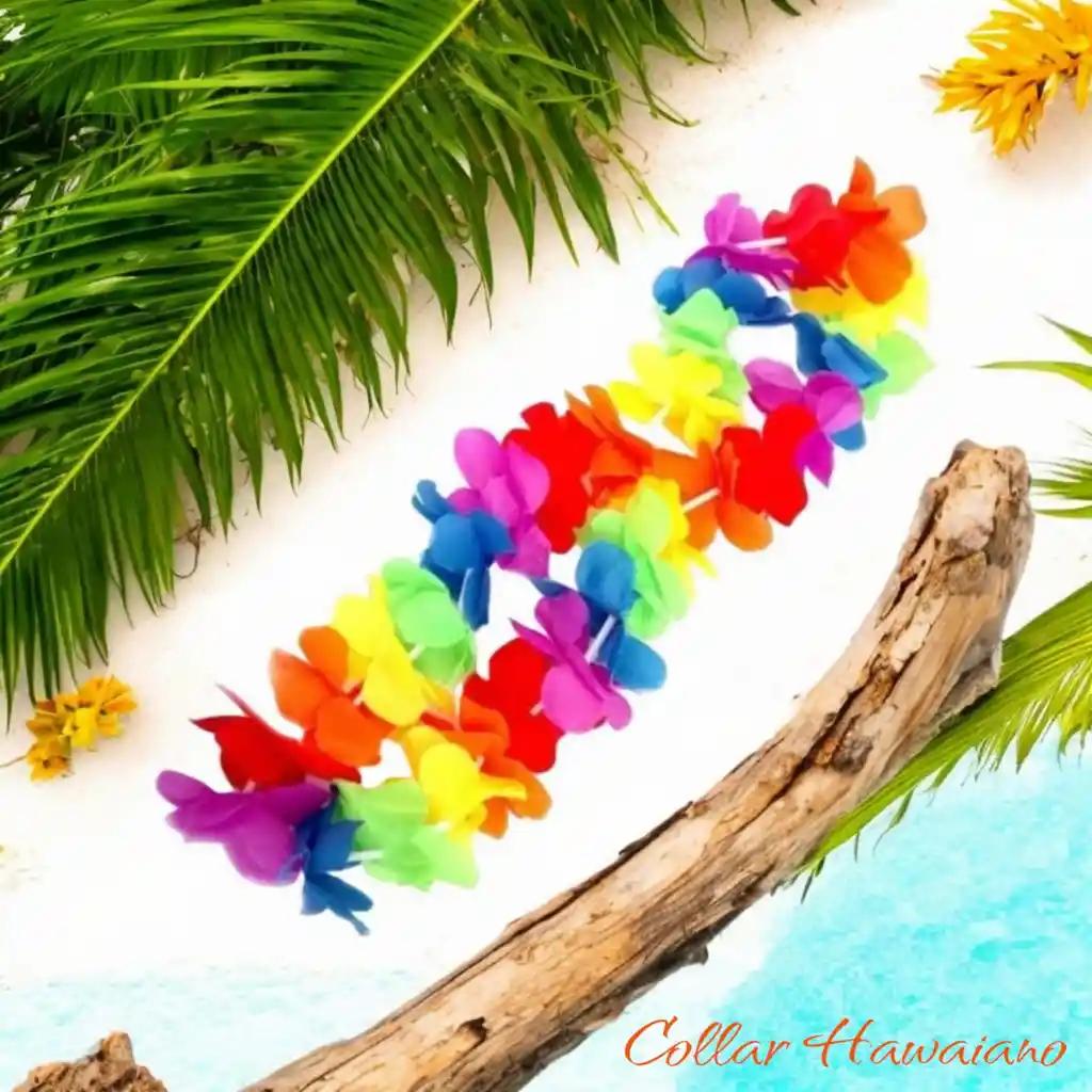 Descripción Collares Hawaianos Fiesta, Hora Loca X1 Unidad Dimensiones Generales (cm): Longitud: 55 cm Material: Tela Color: Colores susrtidos