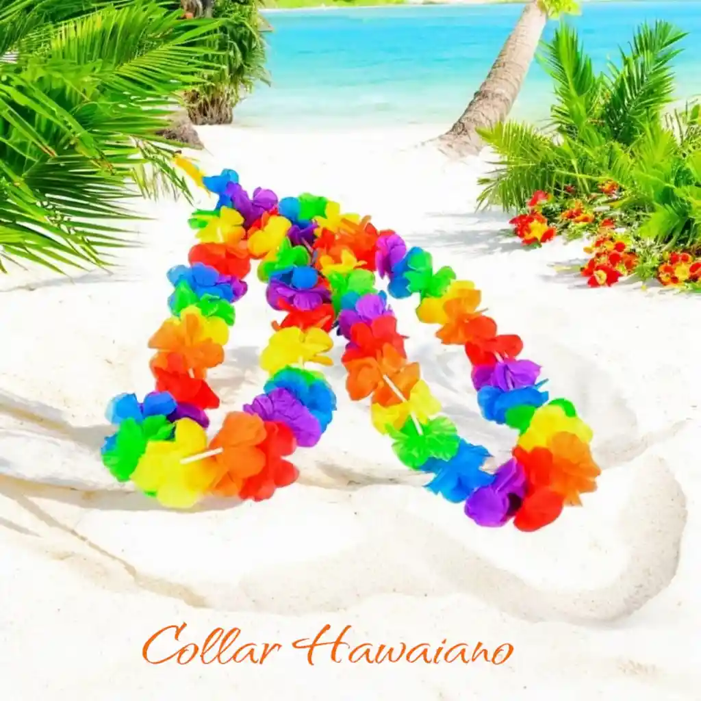Descripción Collares Hawaianos Fiesta, Hora Loca X1 Unidad Dimensiones Generales (cm): Longitud: 55 cm Material: Tela Color: Colores susrtidos