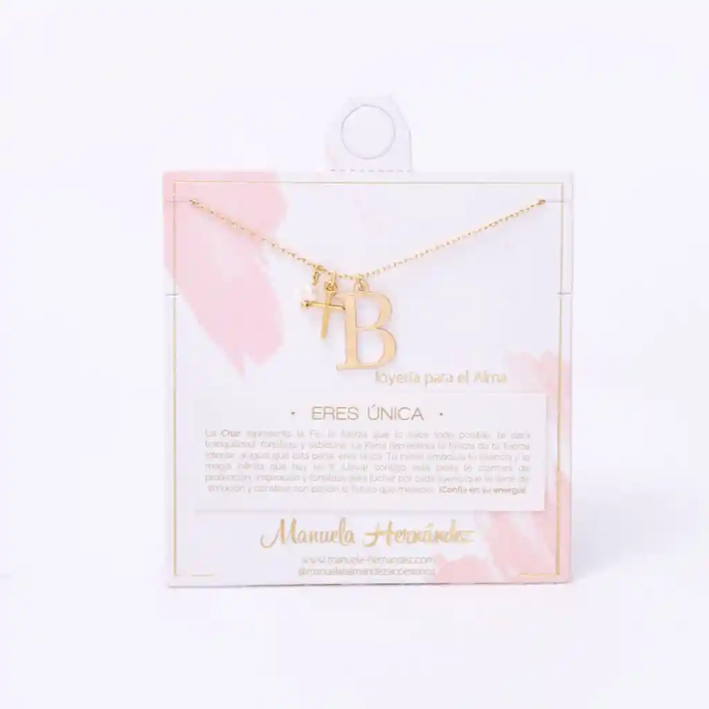 Collar Inicial B Eres Única - Cruz Y Perla