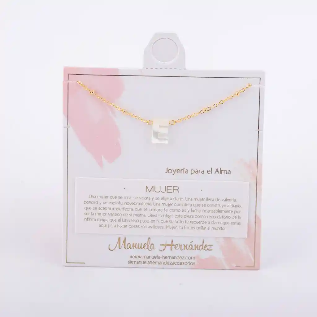 Esta pieza es un recordatorio para elegirte todos los días: incluso cuando dudes, incluso cuando no sea perfecto. 🤍💫 Llévala contigo como un “sí” a tu amor propio, a tu valentía y a esa magia que el universo puso en ti. Porque cuando tú te crees, tú brillas… y haces brillar todo a tu alrededor. 🫶🏻 Descripción de tu Producto - Tipo: choker (queda cerca del cuello) - Material protagonista: inicial elaborada en nácar genuino (brillo natural, tono marfil) - Cadena: delicada en acabado dorado con Baño de Oro 18k. - Estilo: minimalista, elegante y atemporal (ideal para layering o usar solo) - Significado: pieza personalizada que representa tu identidad y tu esencia - Ideal para: autoregalo, regalos especiales (cumpleaños, aniversario, graduación, mamá/hija/amigas) -Incluye: empaque/tarjeta con mensaje de la colección -Cuidado: evita agua, perfume y cremas directamente guarda la pieza separada para proteger el nácar y el brillo del metal - Longitud de la cadena: 40 cm. Sistema de broche ajustable de 7,5 cm para alargar el collar. - Elaborado en Nacar 100% Natural