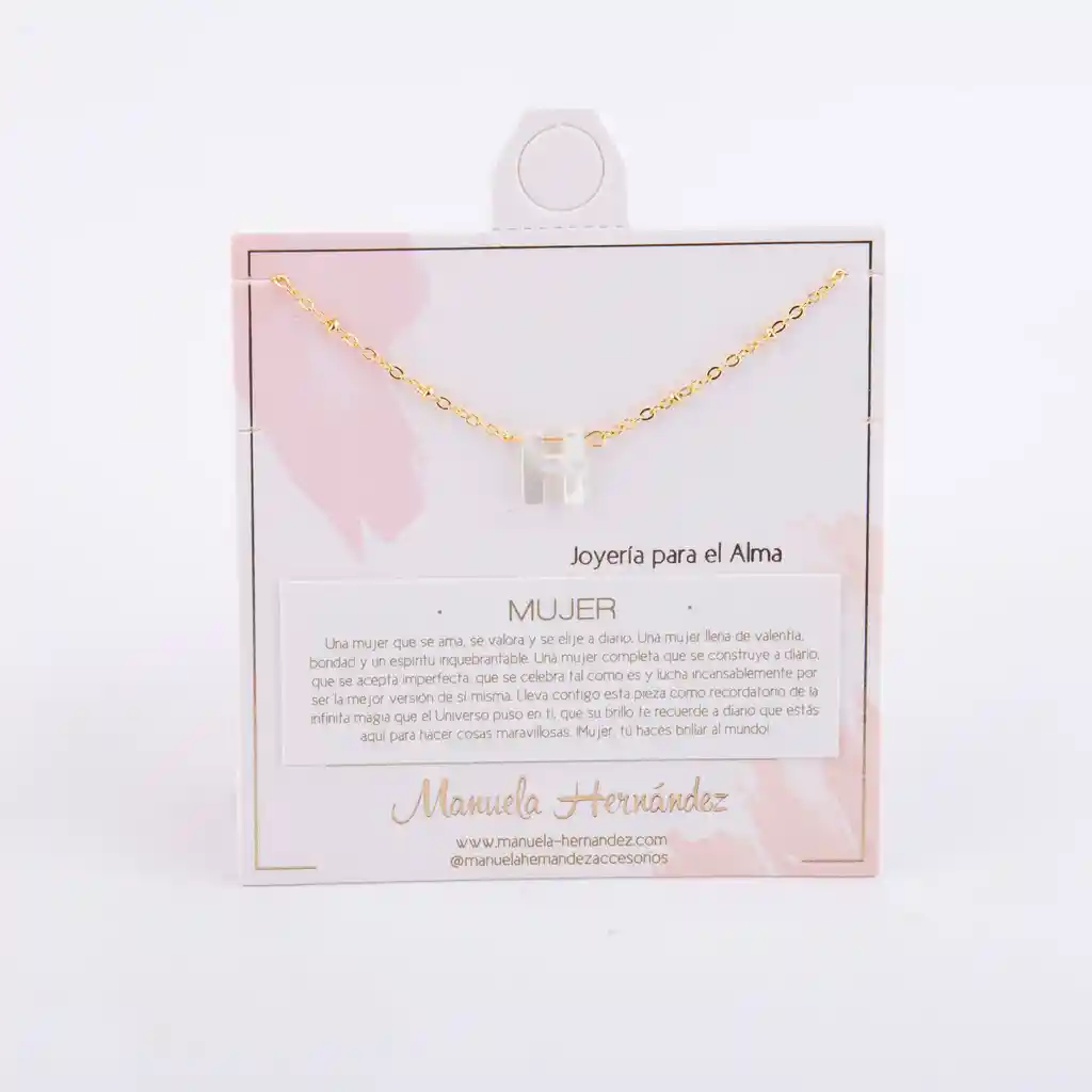 Esta pieza es un recordatorio para elegirte todos los días: incluso cuando dudes, incluso cuando no sea perfecto. 🤍💫 Llévala contigo como un “sí” a tu amor propio, a tu valentía y a esa magia que el universo puso en ti. Porque cuando tú te crees, tú brillas… y haces brillar todo a tu alrededor. 🫶🏻 Descripción de tu Producto - Tipo: choker (queda cerca del cuello) - Material protagonista: inicial elaborada en nácar genuino (brillo natural, tono marfil) - Cadena: delicada en acabado dorado con Baño de Oro 18k. - Estilo: minimalista, elegante y atemporal (ideal para layering o usar solo) - Significado: pieza personalizada que representa tu identidad y tu esencia - Ideal para: autoregalo, regalos especiales (cumpleaños, aniversario, graduación, mamá/hija/amigas) -Incluye: empaque/tarjeta con mensaje de la colección -Cuidado: evita agua, perfume y cremas directamente guarda la pieza separada para proteger el nácar y el brillo del metal - Longitud de la cadena: 40 cm. Sistema de broche ajustable de 7,5 cm para alargar el collar. - Elaborado en Nacar 100% Natural