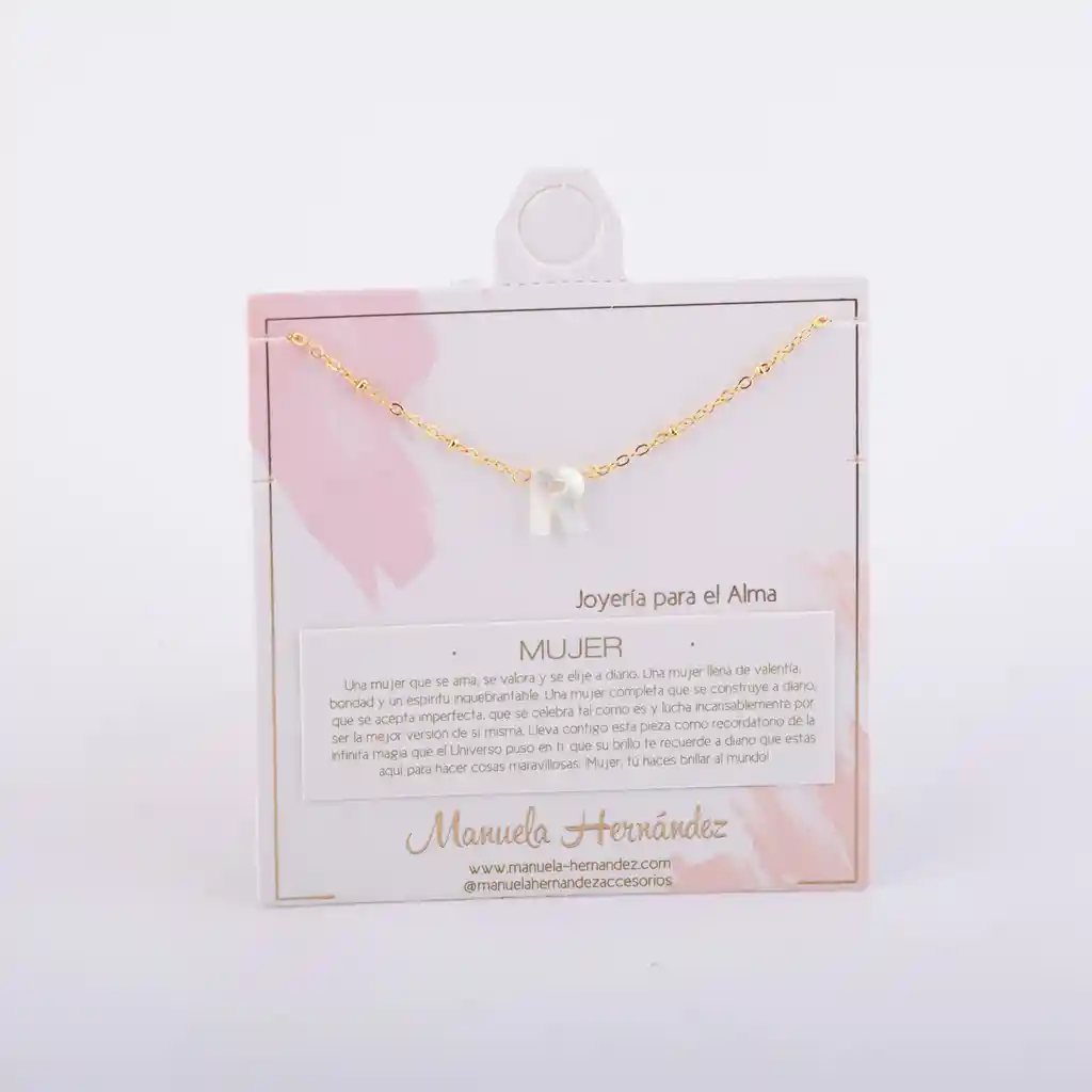 Esta pieza es un recordatorio para elegirte todos los días: incluso cuando dudes, incluso cuando no sea perfecto. 🤍💫 Llévala contigo como un “sí” a tu amor propio, a tu valentía y a esa magia que el universo puso en ti. Porque cuando tú te crees, tú brillas… y haces brillar todo a tu alrededor. 🫶🏻 Descripción de tu Producto - Tipo: choker (queda cerca del cuello) - Material protagonista: inicial elaborada en nácar genuino (brillo natural, tono marfil) - Cadena: delicada en acabado dorado con Baño de Oro 18k. - Estilo: minimalista, elegante y atemporal (ideal para layering o usar solo) - Significado: pieza personalizada que representa tu identidad y tu esencia - Ideal para: autoregalo, regalos especiales (cumpleaños, aniversario, graduación, mamá/hija/amigas) -Incluye: empaque/tarjeta con mensaje de la colección -Cuidado: evita agua, perfume y cremas directamente guarda la pieza separada para proteger el nácar y el brillo del metal - Longitud de la cadena: 40 cm. Sistema de broche ajustable de 7,5 cm para alargar el collar. - Elaborado en Nacar 100% Natural