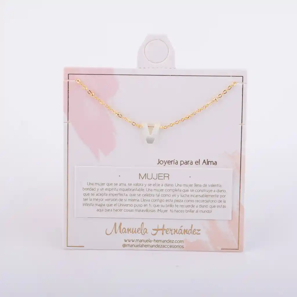 Esta pieza es un recordatorio para elegirte todos los días: incluso cuando dudes, incluso cuando no sea perfecto. 🤍💫 Llévala contigo como un “sí” a tu amor propio, a tu valentía y a esa magia que el universo puso en ti. Porque cuando tú te crees, tú brillas… y haces brillar todo a tu alrededor. 🫶🏻 Descripción de tu Producto - Tipo: choker (queda cerca del cuello) - Material protagonista: inicial elaborada en nácar genuino (brillo natural, tono marfil) - Cadena: delicada en acabado dorado con Baño de Oro 18k. - Estilo: minimalista, elegante y atemporal (ideal para layering o usar solo) - Significado: pieza personalizada que representa tu identidad y tu esencia - Ideal para: autoregalo, regalos especiales (cumpleaños, aniversario, graduación, mamá/hija/amigas) -Incluye: empaque/tarjeta con mensaje de la colección -Cuidado: evita agua, perfume y cremas directamente guarda la pieza separada para proteger el nácar y el brillo del metal - Longitud de la cadena: 40 cm. Sistema de broche ajustable de 7,5 cm para alargar el collar. - Elaborado en Nacar 100% Natural