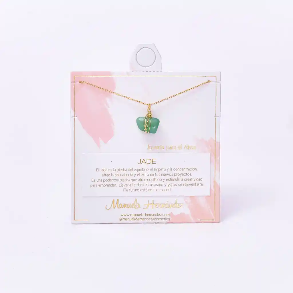 Cadena y apliques Dorados con Baño de Oro 18k. Elaborado con Jade Natural.