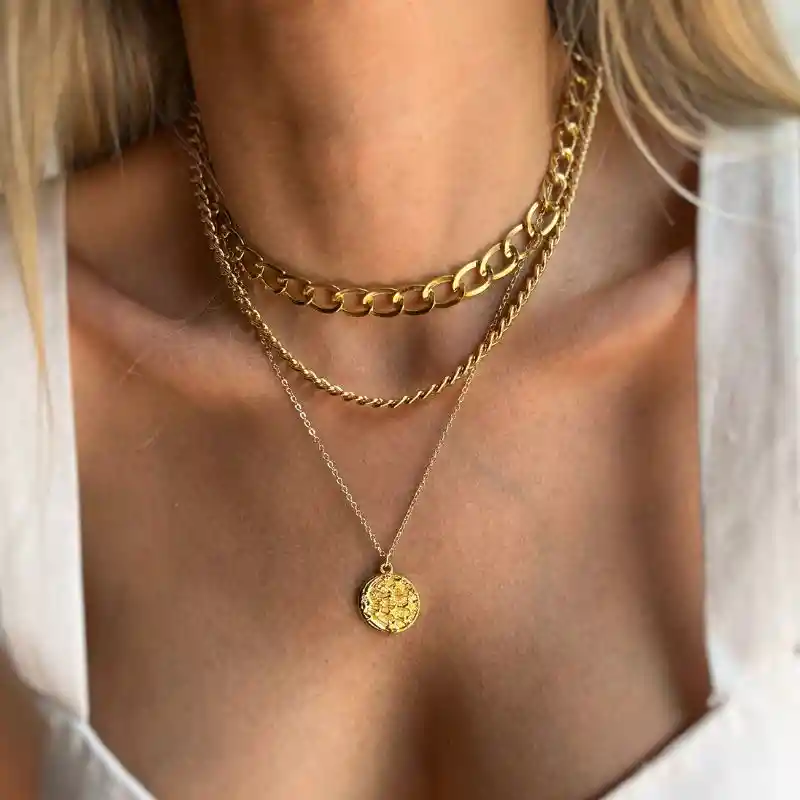 Collar triple, La cadena con dije viene suelta para que armes tu set como mas te guste, collar hermoso infaltable! Material: Rodio Cuidados: Recomendamos guardar por separado cada accesorio, almacenarlos en lugares secos y a temperatura ambiente; limpiarlos con un pañito o franela y sin ningún tipo de producto, evitar contacto con productos químicos como cremas y perfumes, no dormir ni bañarse con ellos. La durabilidad de los accesorios depende 100% del cuidado de cada persona.